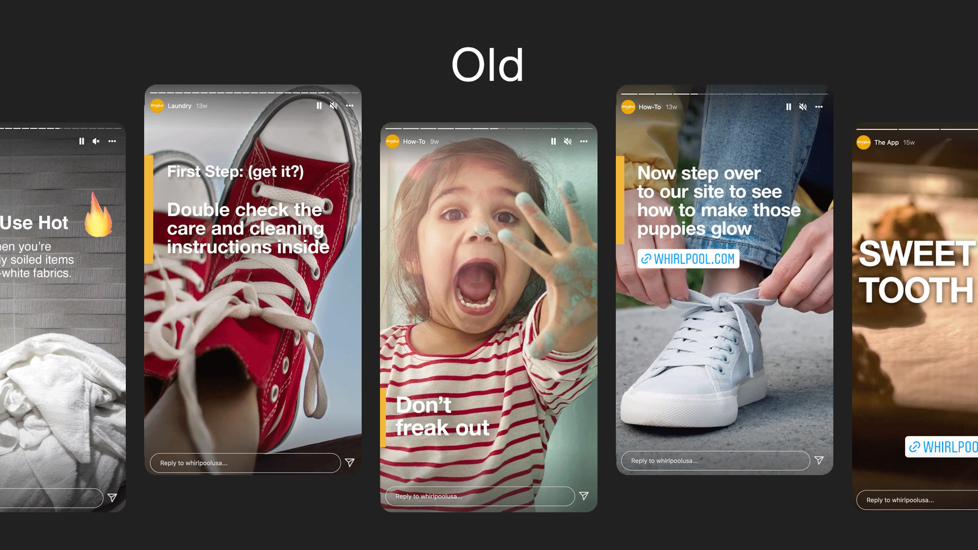 Whirlpool was showing up on social using a templated approach to layout combined with an inconsistent execution of type, imagery and messaging details. We turned that philosophy inside out, focusing on consistency and sophistication in their brand elements, a more liberal use of their gold (as well as a fresh new “marigold” color) and photography that reinforces their color palette and brand persona. Not to mention a new illustration approach and more relatable subject matter.